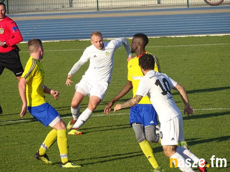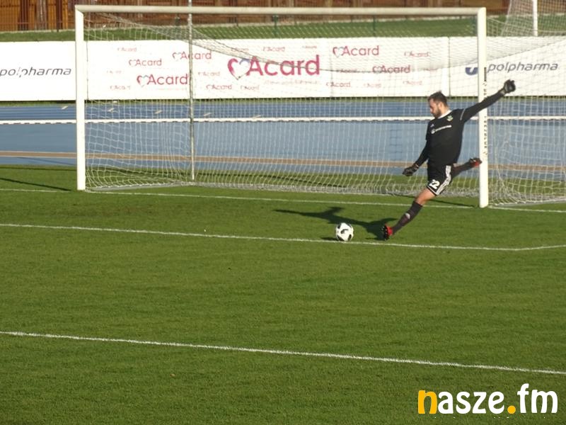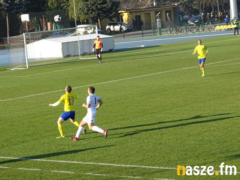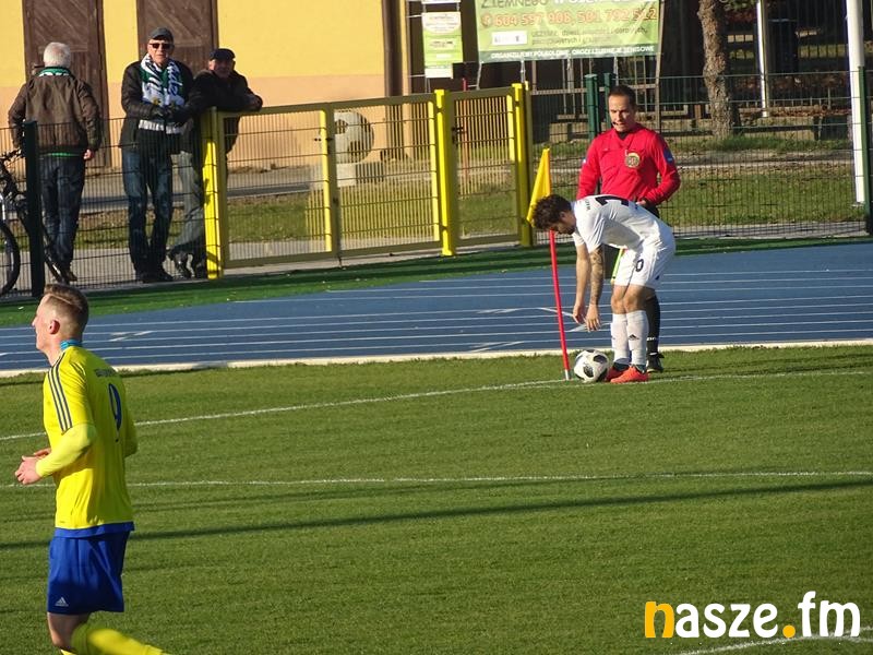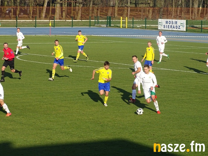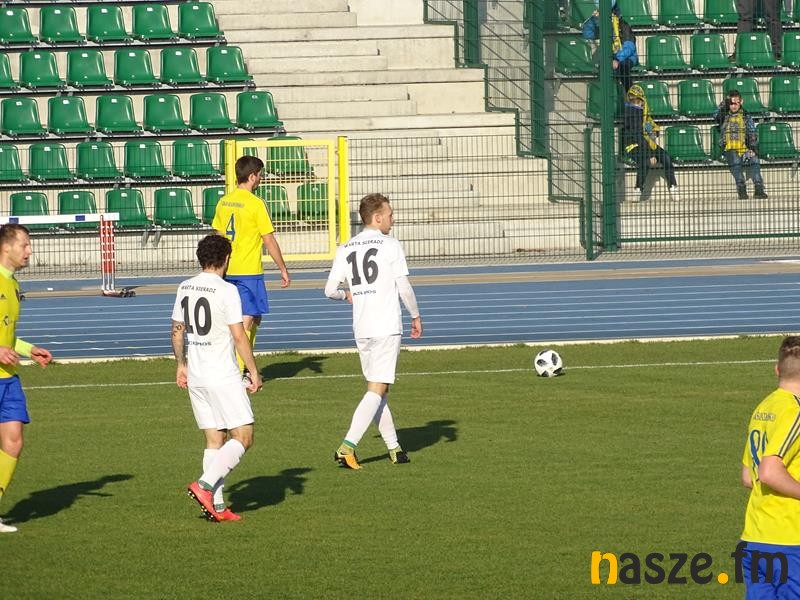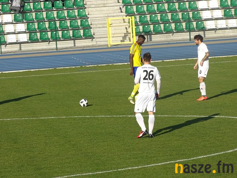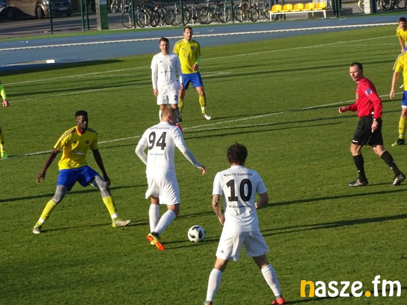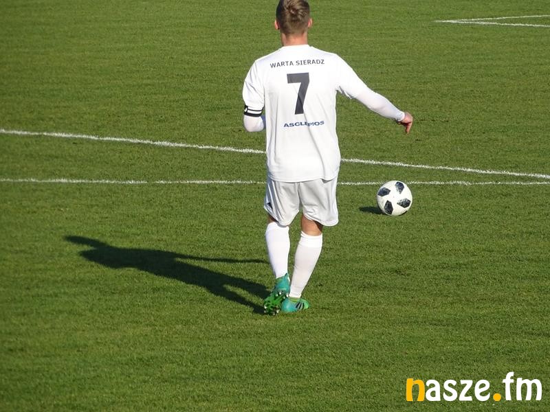 Pierwszą groźną sytuację mieli goście. W 7.minucie spotkania z ostrego kąta strzelał Kacper Michnicki. Piłka przeszła jednak obok słupka. W 11.minucie blisko bramki byli sieradzanie. Mariusz Zawodziński dośrodkował z rzutu rożnego, a Jakub Szulc uderzył z główki tuż nad poprzeczką. Osiem minut później Warta powtórzyła akcję. Ponownie z rożnego dośrodkowywał Zawodziński i znów strzał głową oddał Szulc. Tym razem jednak piłka wpadła do bramki. W pierwszej połowie Warta miała szansę podwyższyć wynik. Blisko gola był Dawid Przezak, który strzelał z dystansu z woleja. A tuż przed gwizdkiem kończącym pierwsze 45 minut, ładnym strzałem popisał się Adam Patora. Skuteczną interwencją popisał się jednak Wiktor Baranowski.