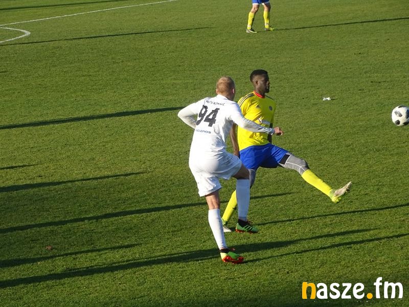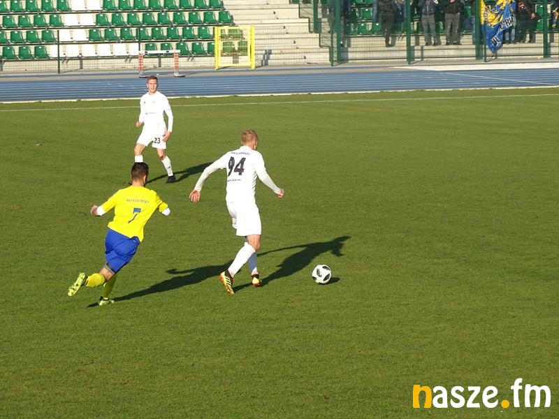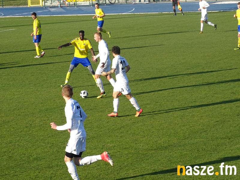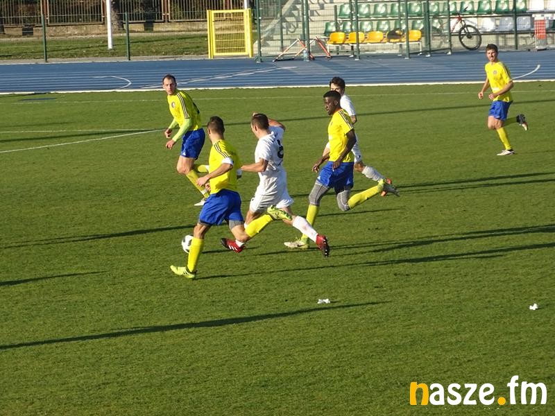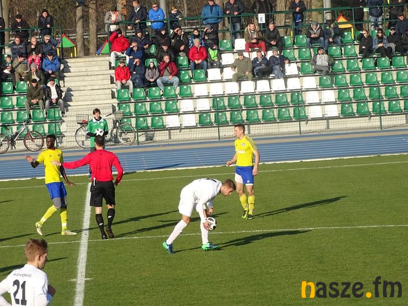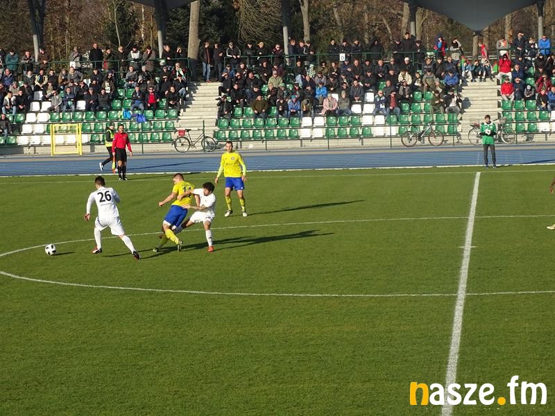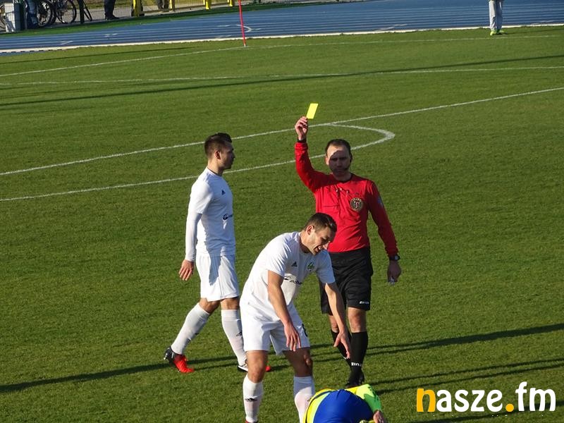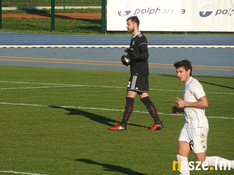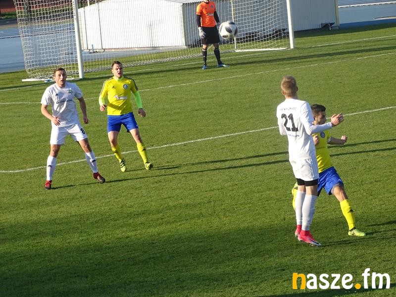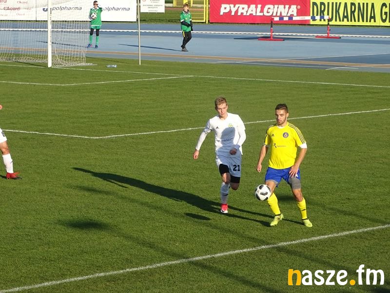 Pierwszą groźną sytuację mieli goście. W 7.minucie spotkania z ostrego kąta strzelał Kacper Michnicki. Piłka przeszła jednak obok słupka. W 11.minucie blisko bramki byli sieradzanie. Mariusz Zawodziński dośrodkował z rzutu rożnego, a Jakub Szulc uderzył z główki tuż nad poprzeczką. Osiem minut później Warta powtórzyła akcję. Ponownie z rożnego dośrodkowywał Zawodziński i znów strzał głową oddał Szulc. Tym razem jednak piłka wpadła do bramki. W pierwszej połowie Warta miała szansę podwyższyć wynik. Blisko gola był Dawid Przezak, który strzelał z dystansu z woleja. A tuż przed gwizdkiem kończącym pierwsze 45 minut, ładnym strzałem popisał się Adam Patora. Skuteczną interwencją popisał się jednak Wiktor Baranowski.