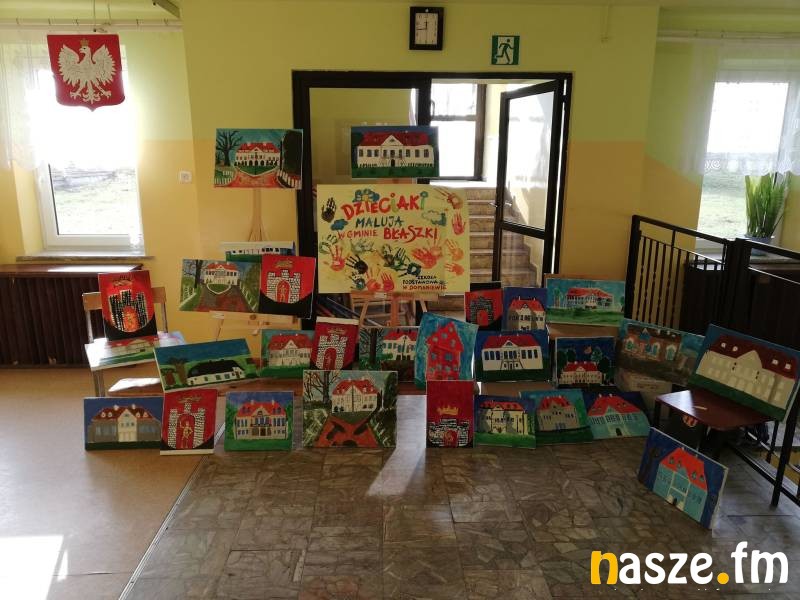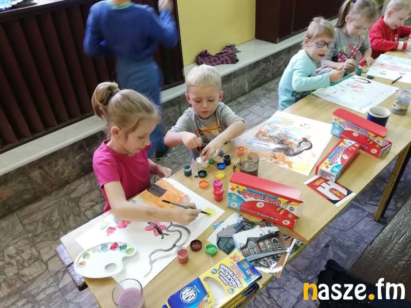 Pod opieką lokalnej artystki Pani Jolanty Szczepańskiej dzieci poznały regionalną sztukę i tradycję ludową, wykonując obrazy charakterystycznych miejsc w gminie Błaszki.