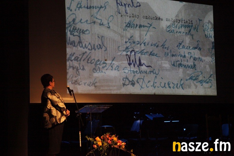 Sala Teatru była wypełniona po brzegi. Poszczególni goście na ręce Pani Prezes składali kwiaty, podziękowania i życzenia.