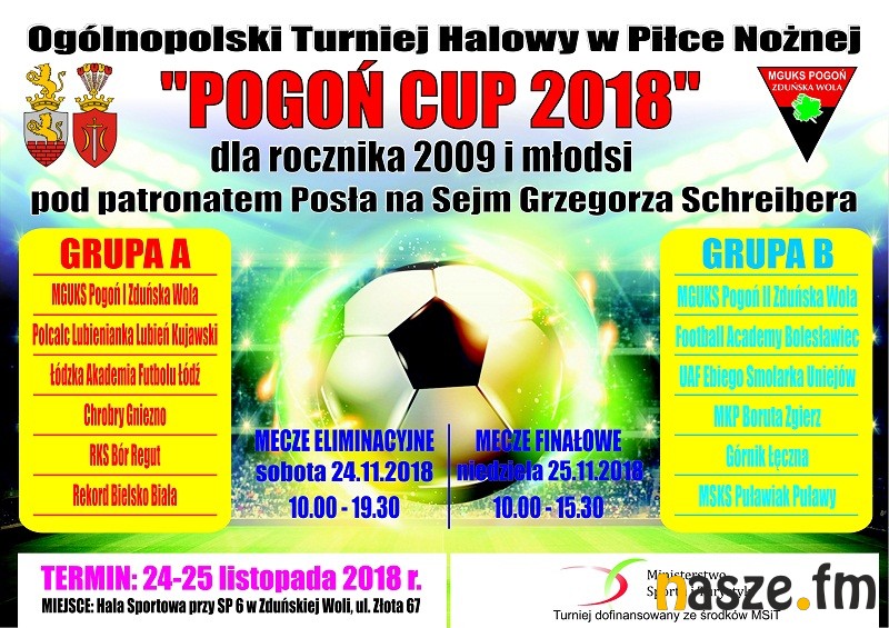 Jutro o 10:00 w hali Szkoły Podstawowej nr 6 w Zduńskiej Woli rozpocznie się Ogólnopolski Turniej Halowy Pogoń Cup 2018.