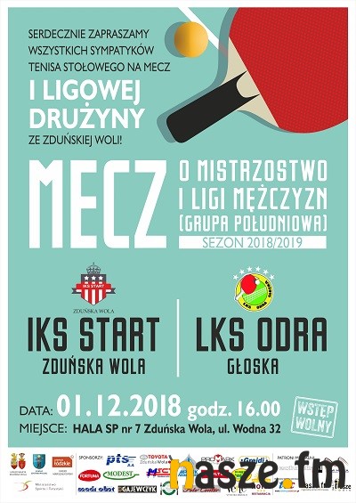Przed tenisistami stołowymi klubu IKS START Zduńska Wola ostatni w tej rundzie mecz w I lidze. We własnej hali zagramy z LKS Odra Głoska.