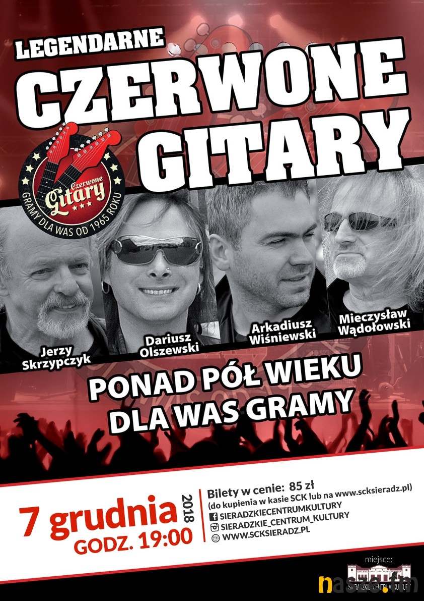 Nazwali się Czerwone Gitary, bo taki był kolor gitar, na których grali, a grają od ponad pół wieku. Zespół wystąpi z koncertem w Teatrze Miejskim w Sieradzu w piątek 7 grudnia. Początek o godz. 19:00.