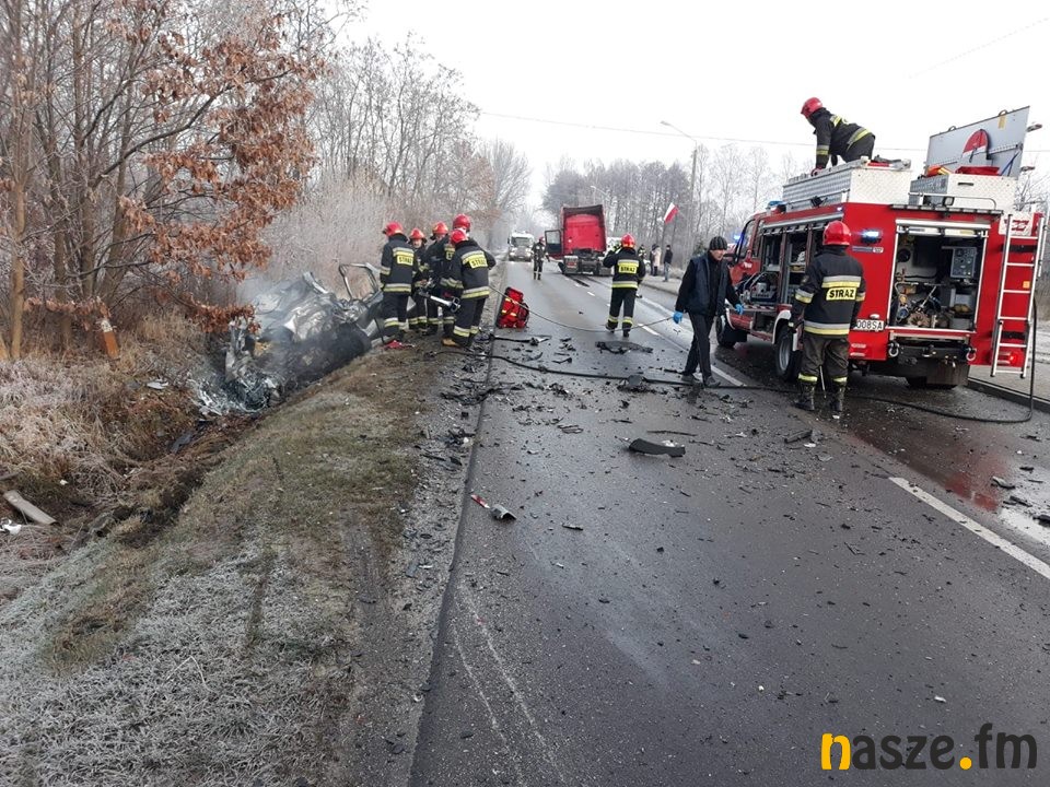 W miejscowości Suchoczasy na trasie ze Zduńskiej Woli do Szadku doszło dziś rano do czołowego zderzenia samochodu osobowego z ciężarówką. Na miejscu zginął kierowca nissana.