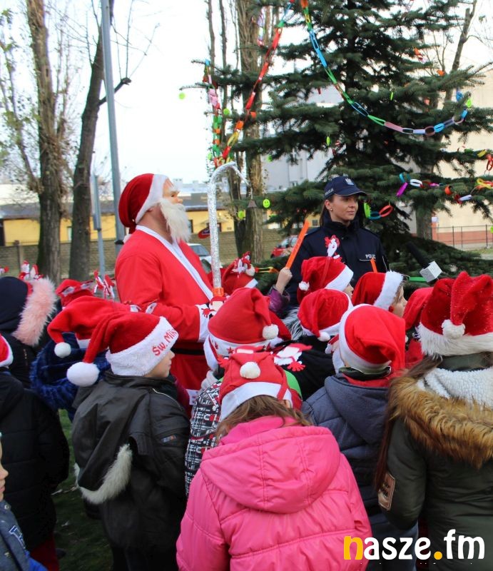 Dziś podczas dekorowania choinki przed budynkiem szkoły nie mogło zabraknąć św. Mikołaja, który rozdawał najmłodszym odblaskowe gadżety i słodycze.