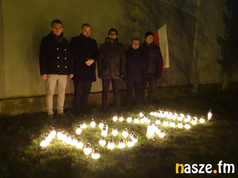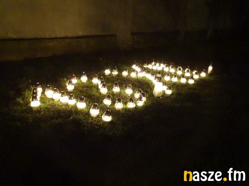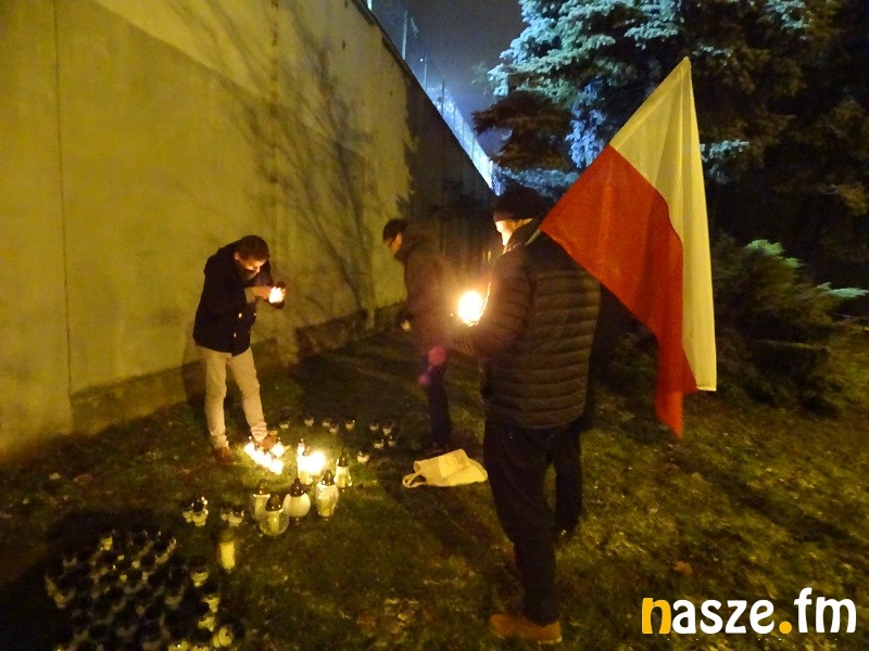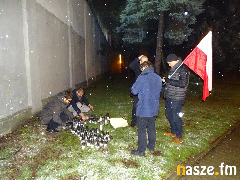 Napis z palących się zniczy ułożony został przed więziennym murem od strony ul. Sienkiewicza.