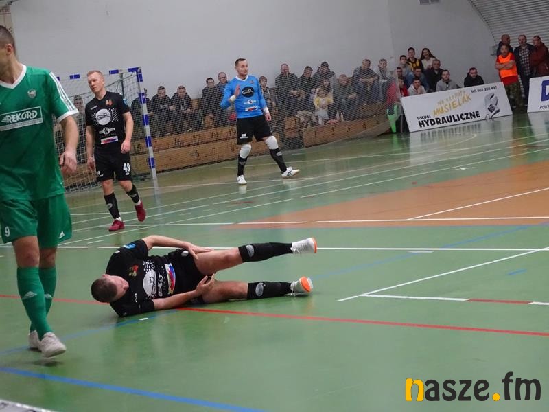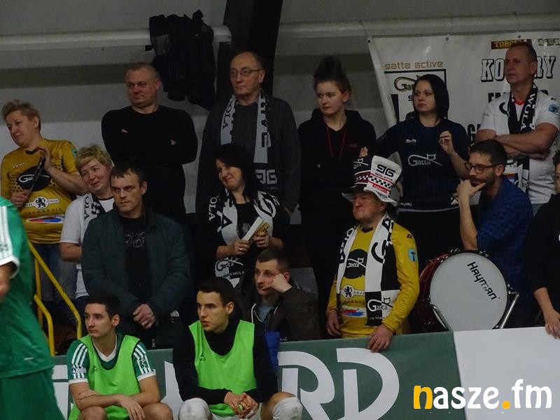Od początku spotkanie rozgrywane było na wysokich obrotach. Zarówno Daiusz Słowiński, jak bramkarz gości musieli kilkukrotnie interweniować. W tej wymianie ciosów zwycięsko wyszła Gatta. W 12.minucie pierwszego gola zdobył Daniel Krawczyk. Superstrzelec Kocurów przebiegł kilka metrów z piłką i mocnym uderzeniem z dystansu trafił do siatki rywala. Dwie minuty później Arkadiusz Szypczyński zwiódł golkipera gości i dał nam kolejną bramkę. Był to jego 9 gol w tym sezonie. Szypczyński jest najskuteczniejszym zawodnikiem Gatty, a w klasyfikacji strzelców ligi zajmuje ex aequo 4.miejsce. Na 3:0 trafił Michał Marciniak, który dobił piłkę po strzale Szypczyńskiego. Chwilę później Rekord zdobył bramkę kontaktową. Najlepszy strzelec tego sezonu, Michał Marek sprytnie obrócił się, będąc krytym przez gracza Gatty i mocnym strzałem trafił w prawy dolny róg bramki. Pod koniec pierwszej połowy Gatta otrzymała jeszcze rzut karny. Krawczyk nie zdołał jednak pokonać bramkarza Rekordu.