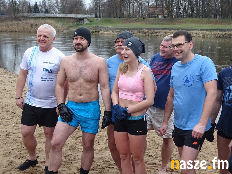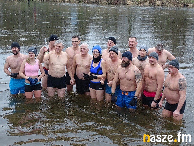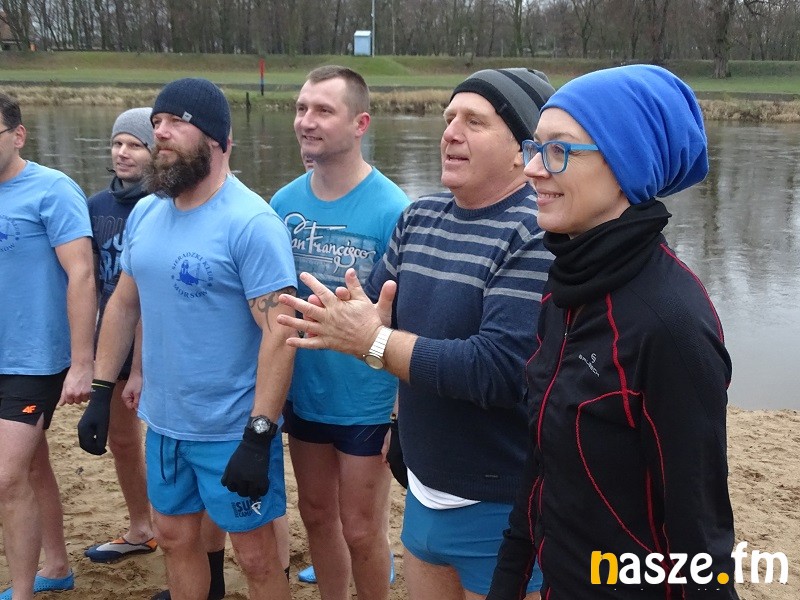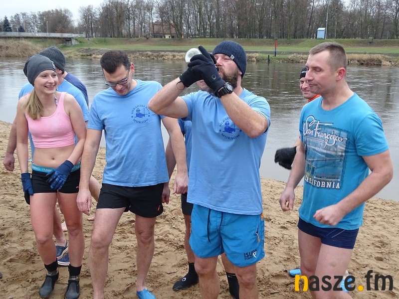 To już co najmniej kilkuletnia tradycja. Morsy składają sobie oraz mieszkańcom regionu noworoczne życzenia przy symbolicznej lampce szampana. A potem wchodzą choć na kilka chwil do wody. W tym roku zadanie było ułatwione, bo temperatury nie są na tyle niskie, by trzeba było kuć w rzece przerębel.