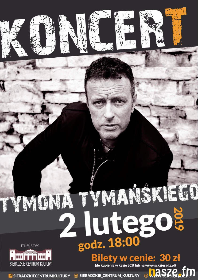 - Tymon wystąpi z bardzo kameralnym projektem, tym razem bez zespołu The Transistors. Zaśpiewa covery m.in. zespołu The Beatles,ale nie zabraknie także autorskich kompozycji. Zapowiada się bardzo przyjemny wieczór, na który zapraszam Państwa bardzo serdecznie - mówi Romuald Erenc, dyrektor Sieradzkiego Centrum Kultury.