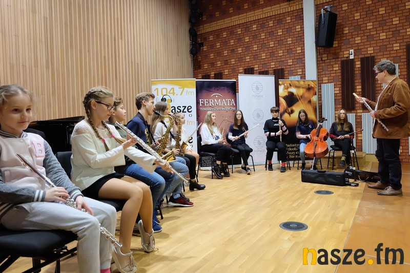Pokazał jak w prosty sposób można zmodyfikować barwę i brzmienie fletu poprzecznego. Omówił skalę całotonową i w oparciu o nią uczniowie próbowali swoich sił w improwizacji jazzowej. Trudniejszym zadaniem okazała się improwizacja o interwały i skalę zwiększoną, o której opowiedział Dominik Wania. Na początku koncertu uczniowie szkoły muzycznej zaprezentowali efekt swojej pracy warsztatowej z Leszkiem HeFi Wiśniowskim i Dominikiem Wanią. Była to już kolejna próba młodych muzyków na gruncie muzyki jazzowej.