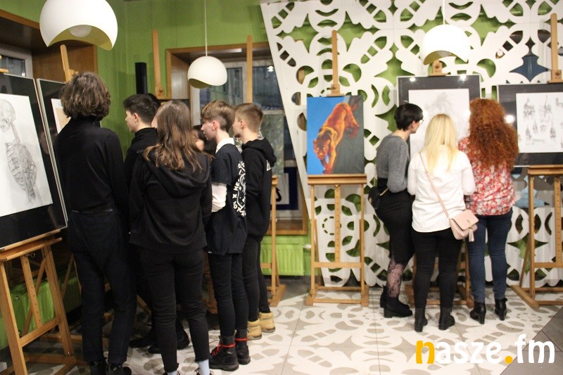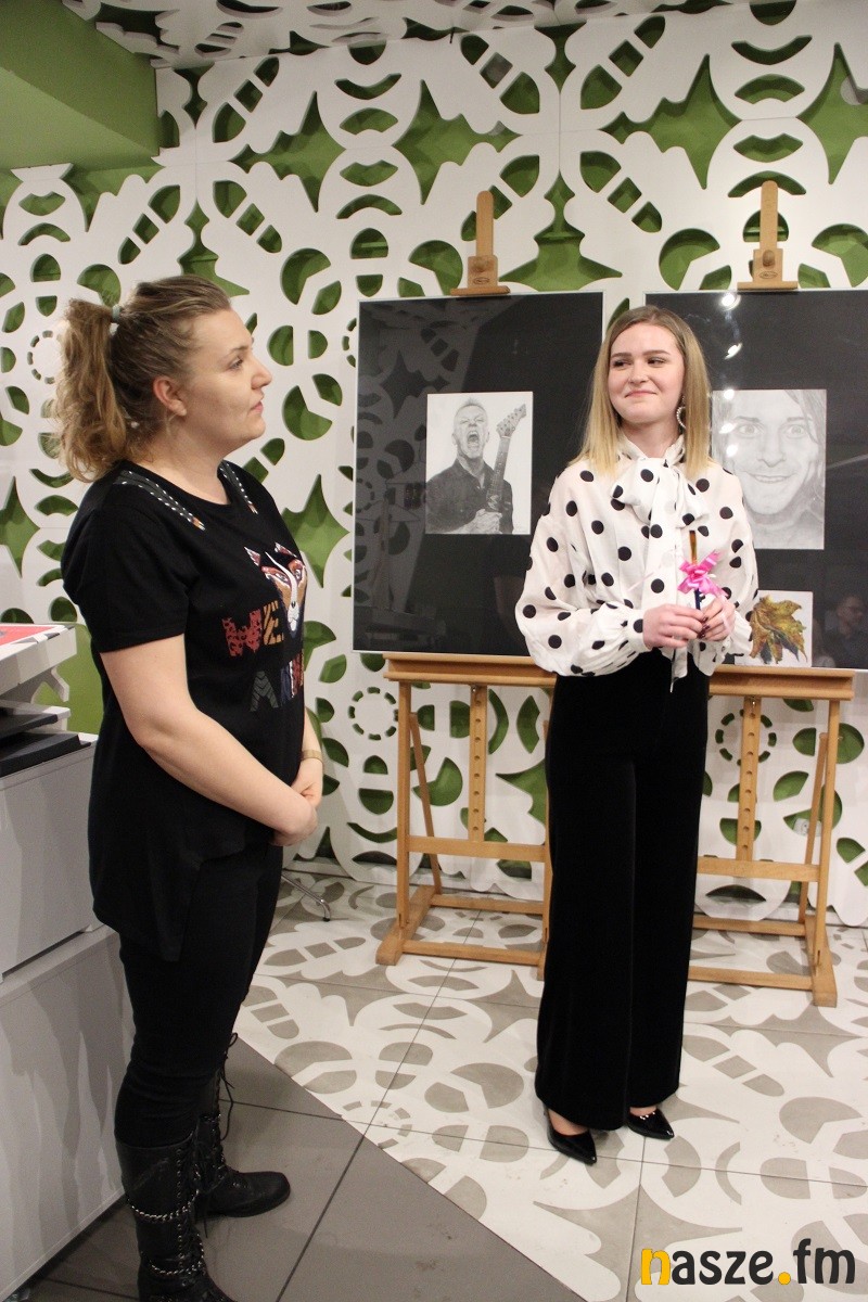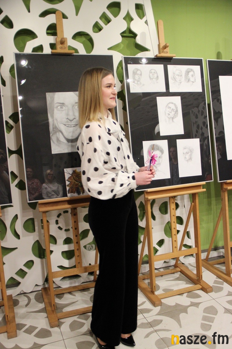 Justyna Kaźmierska uczy się w Liceum Plastycznym im. Katarzyny Kobro w Zduńskiej Woli pod okiem Doroty Kuśmierczak-Skotnickiej. Na wystawie prezentuje hiperrealistyczne rysunki wykonane ołówkiem, prace malarskie i szkice. W czasie wernisażu młoda artystka otrzymała symboliczny pędzel wraz z życzeniami dalszych sukcesów artystycznych.