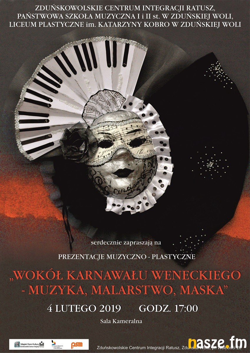 W najbliższy poniedziałek w Zduńskowolskim Centrum Integracji – Ratusz odbędą się prezentacje muzyczno-plastyczne pt. "Wokół karnawału weneckiego – muzyka, malarstwo, maska".