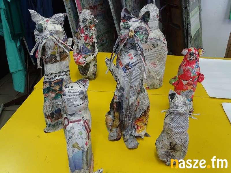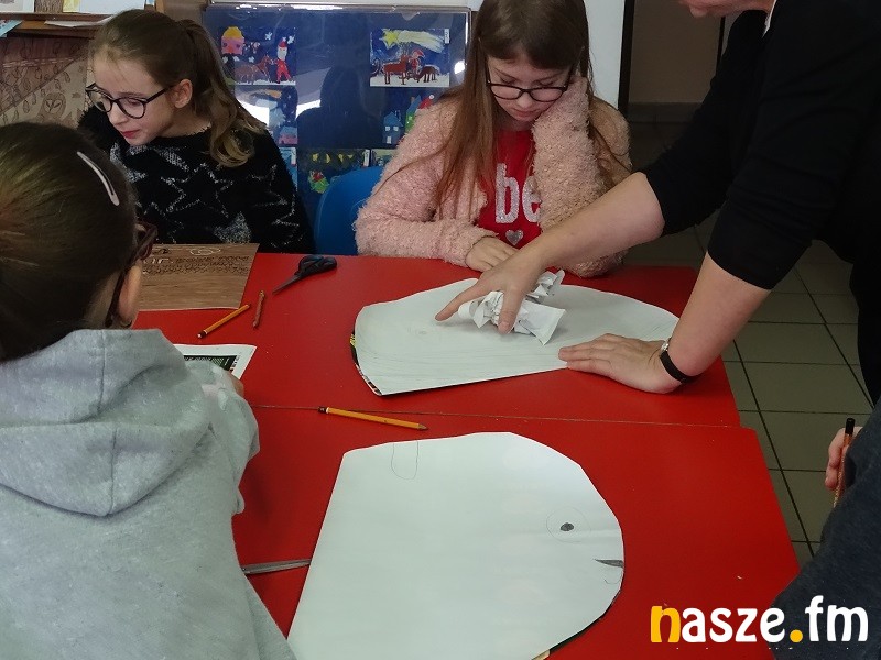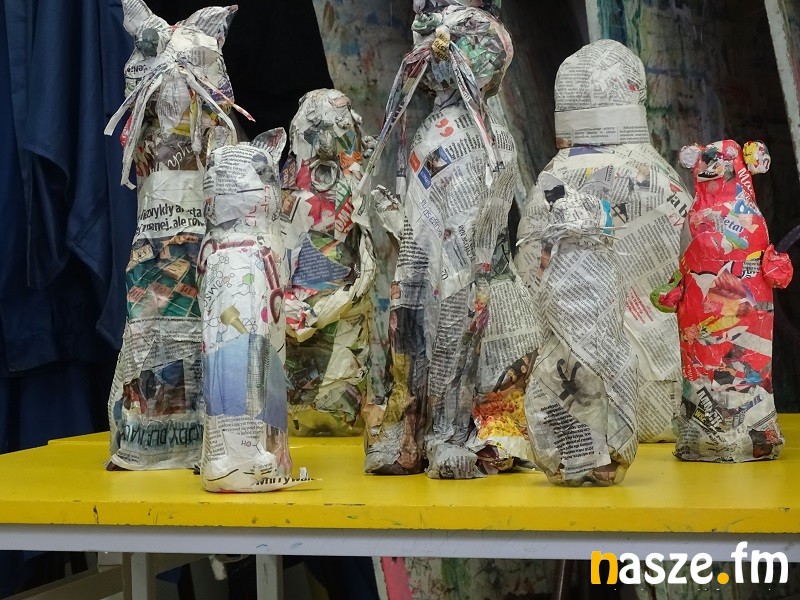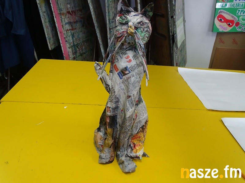 - Wczoraj robiliśmy rzeźby z masy papierowej. Ja zrobiłam kota i misia. Było to trudne bo używaliśmy specjalnego kleju z mąki. Dzisiaj robimy maski z papieru, które później będziemy prezentować w teatrze cieni. - mówi jedna z uczestniczek warsztatów
