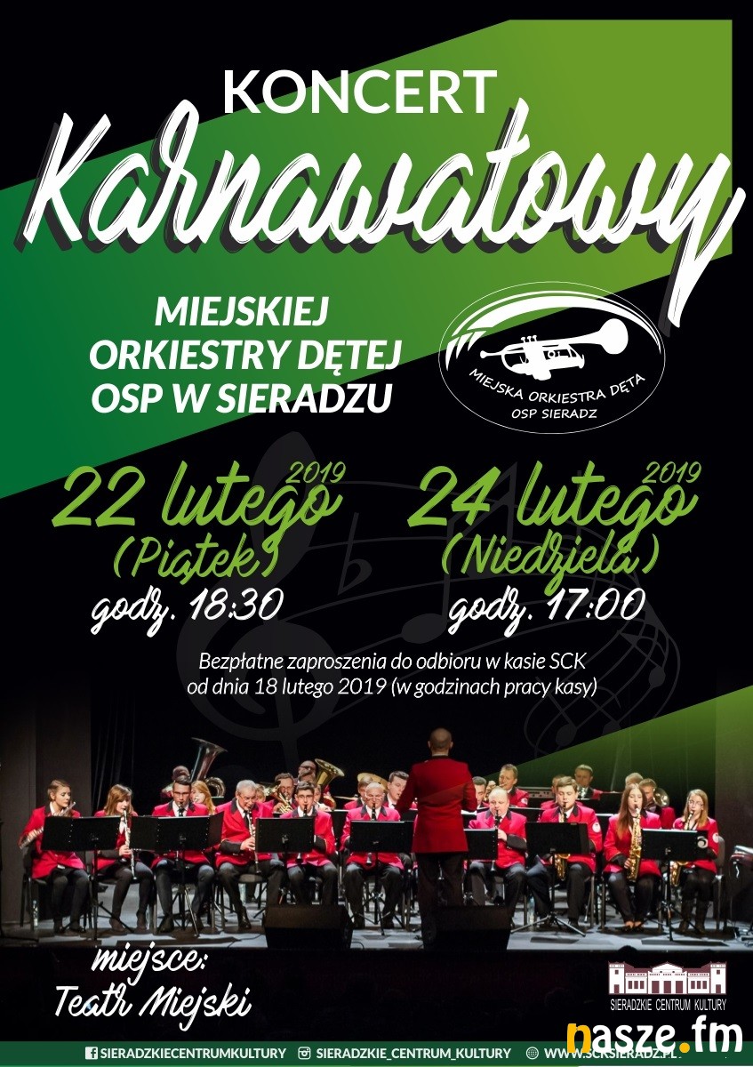 Miejska Orkiestra Dęta OSP w Sieradzu zaprasza 22 i 24 lutego na koncerty karnawałowe - W zeszłym roku było tak duże zainteresowanie, że tym razem postanowiliśmy zagrać dwa razy ten sam koncert- zapowiada Andrzej Czapnik, kierownik Orkiestry. Dziś na naszej antenie będziecie mogli też wygrać bilety na to muzyczne wydarzenie.
