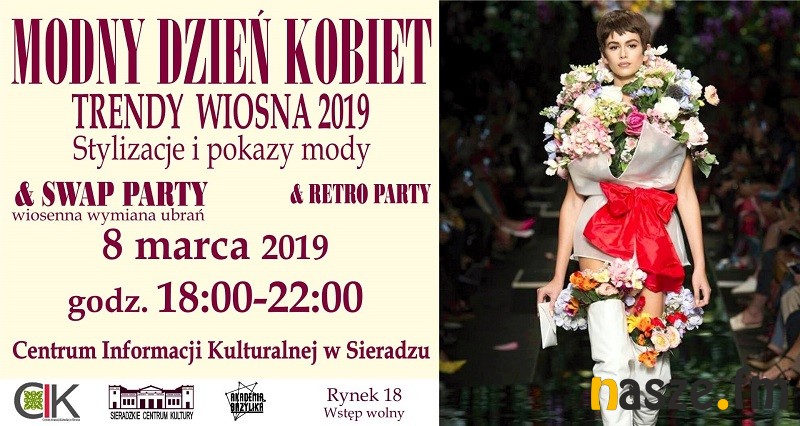 Centrum Informacji Kulturalnej w Sieradzu zaprasza 8 marca na wspólne spędzenia Dnia Kobiet. W programie m..in. prezentacja trendów na wiosnę 2019, pokaz wiosennych stylizacji czy wymiana ubrań. Na finał potańcówka- retro party.