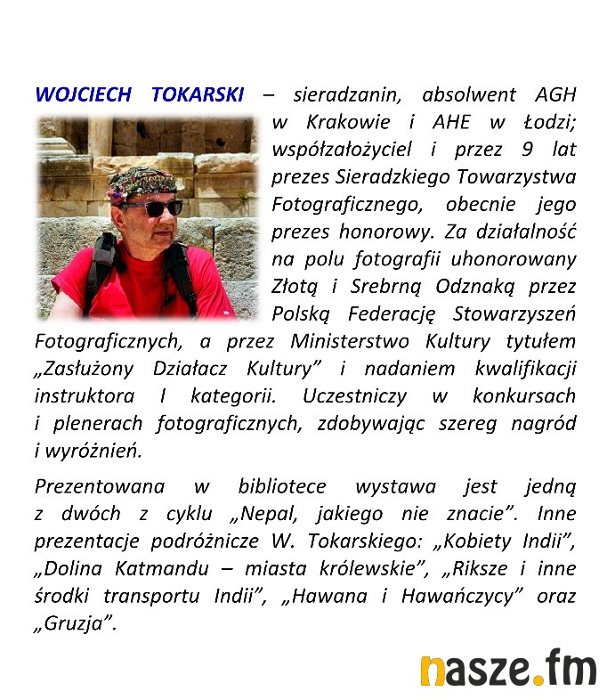 Powiatowa Biblioteka Publiczna w Sieradzu oraz fotografik i podróżnik Wojciech Tokarski zapraszają dziś na spotkanie oraz otwarcie wystawy z cyklu "Nepal, jakiego nie znacie".