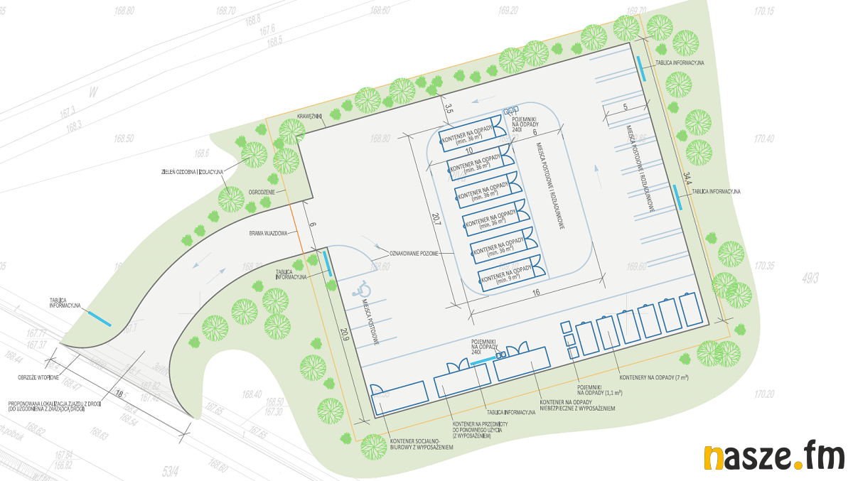 Zadanie obejmuje opracowanie dokumentacji projektowej, wykonanie robót budowlano-montażowych oraz zakup wyposażenia m.in. kontenerów i pojemników do magazynowania poszczególnych rodzajów odpadów.