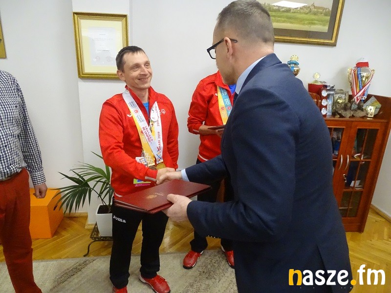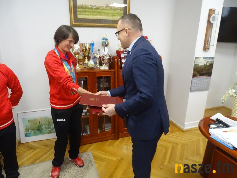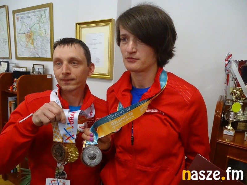 Łukasz Kwapiszewski, Sylwia Ubych, a także ich trener Piotr Iszczek byli gośćmi prezydenta Sieradza, Pawła Osiewały. Przypomnijmy, że niedawno reprezentanci klubu Spartakus Sieradz wzięli udział w Letnich Igrzyskach Olimpiad Specjalnych w Abu Zabi, skąd przywieźli trzy medale.