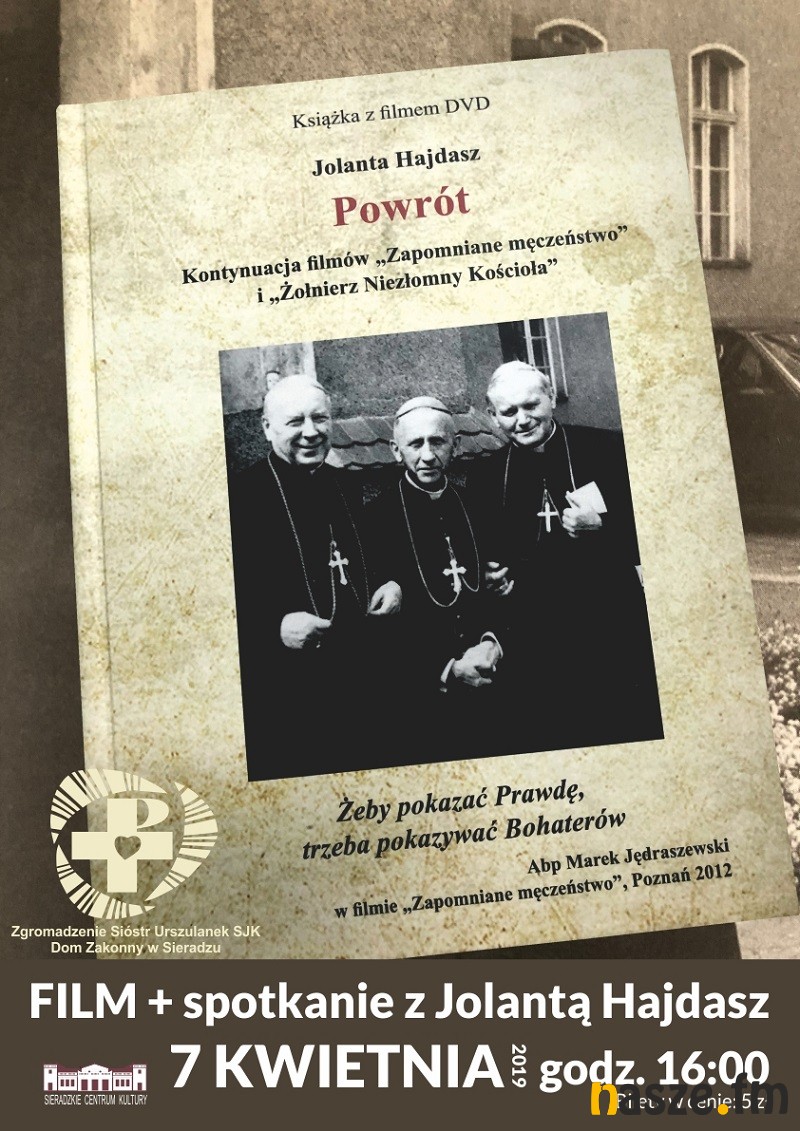 Zgromadzenie Sióstr Urszulanek SJK w Sieradzu zaprasza 7 kwietnia na prezentacje filmu "Powrót" i spotkanie z Jolantą Hajdasz. To trzeci film reżyserki poświęcony historii prześladowania, działalności i upamiętniania arcybiskupa Antoniego Baraniaka.