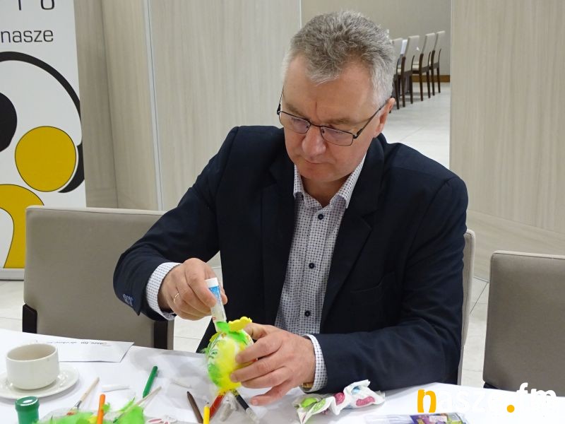 - Ja naprawdę nie mam talentów plastycznych, dlatego początkowo wymyśliłem, że owinę w serwetkę z motywem kolorowych jajeczek to jajo, które przypadło mi do ozdobienia. Serwetka okazała się jednak zbyt mała, no i muszę jednak chwycić za mazaki - mówił z przymrużeniem oka Mariusz Bądzior.