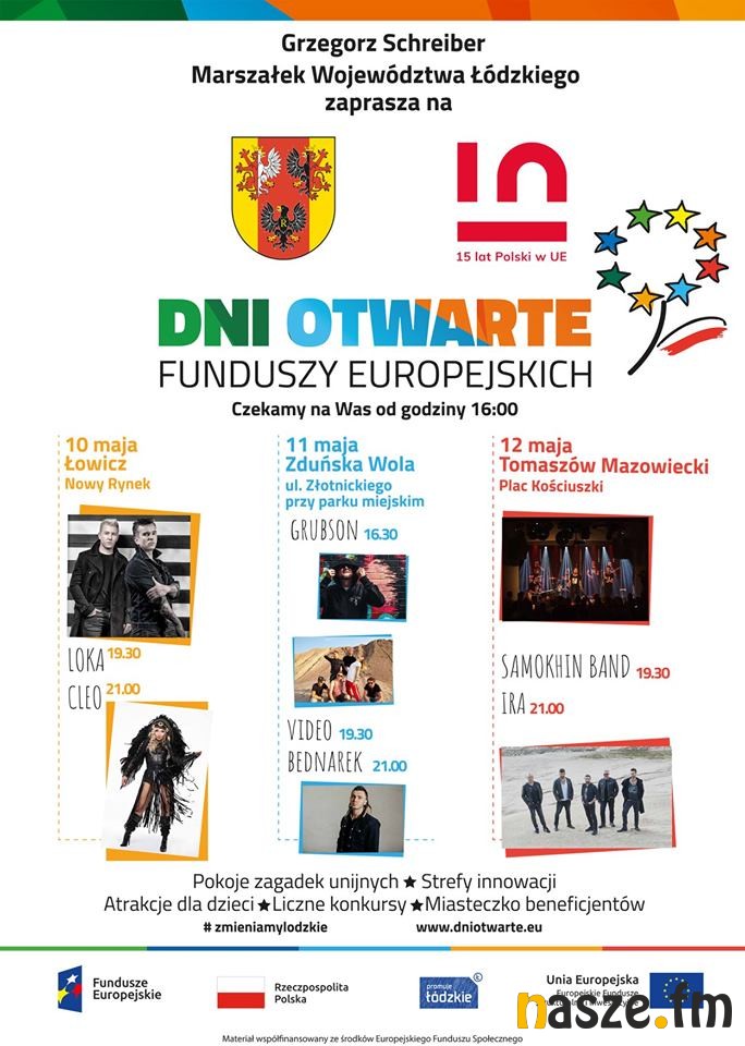 Koncerty gwiazd, konkursy, pikniki rodzinne, mecze z udziałem koszykarek, warsztaty kosmetyczne, pokazy kulinarne – te i wiele innych atrakcji przygotowano dla mieszkańców województwa łódzkiego na Dni Otwarte Funduszy Europejskich. Impreza ta jutro, 11 maja, zawita do Zduńskiej Woli, a w niedzielę odbędzie się w Sieradzu.