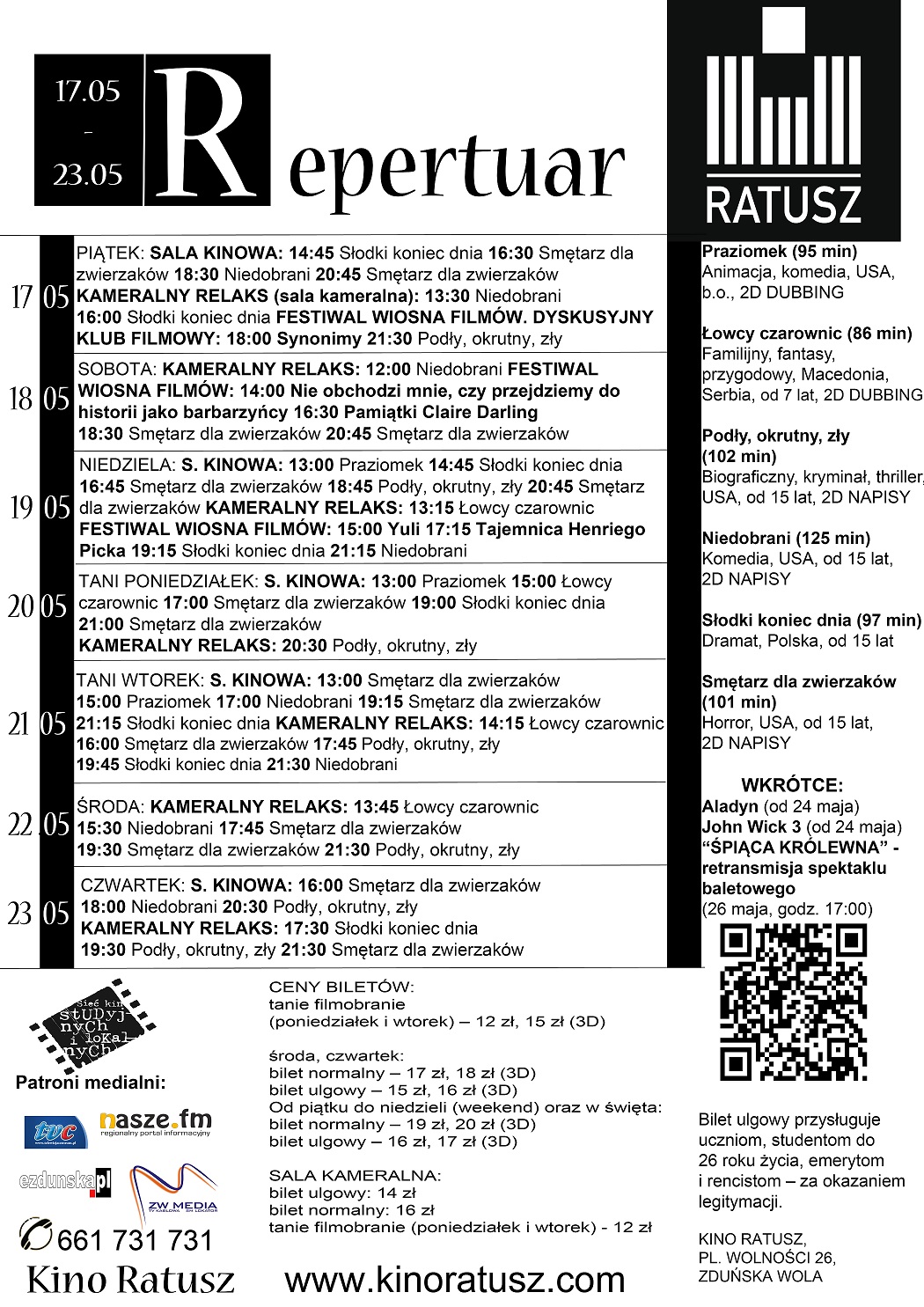 Poniżej znajdziecie repertuar Kina Ratusz na najbliższe dni.