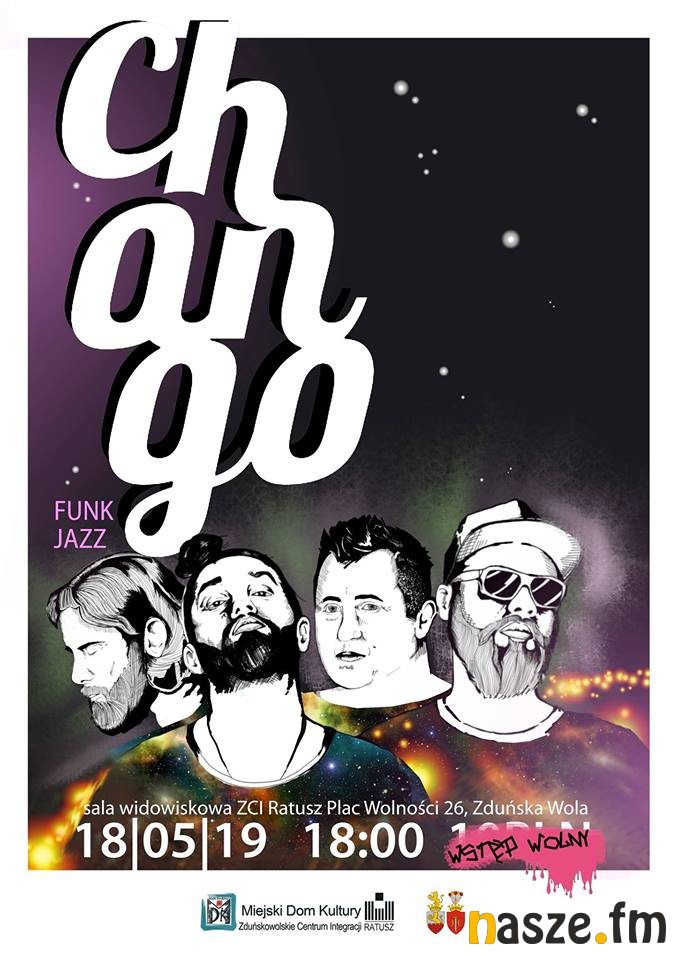 W najbliższą sobotę, 18 maja, w Zduńskowolskim Centrum Integracji – Ratusz wystąpi zespół Chango. To niesamowicie energetyczny kwartet grający muzykę łączącą ze sobą to co najlepsze z funka, jazzu i rock'n'rolla.