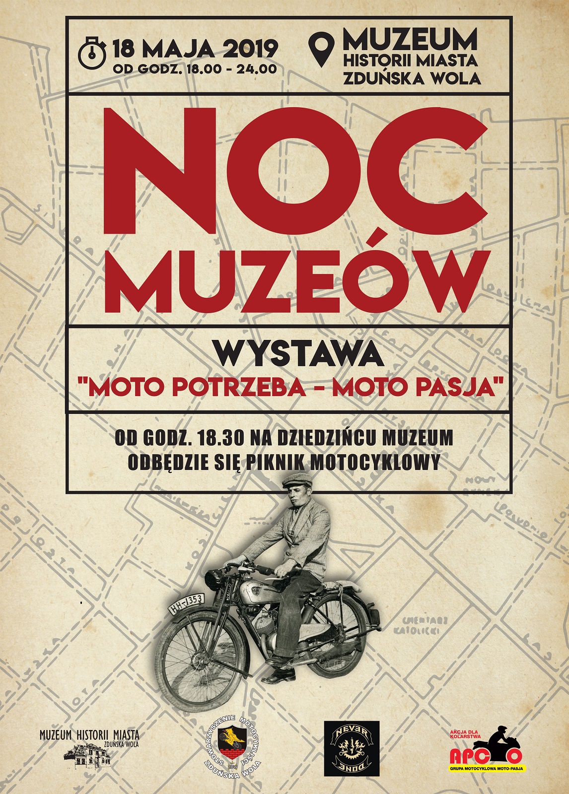 Wystawa "Motopotrzeba-Motopasja" powstała we współpracy z lokalnymi grupami motocyklowymi: APC Motopasja, Stowarzyszeniem Motocykliści Zduńska Wola oraz Klubem Motocyklowym Never Done.
