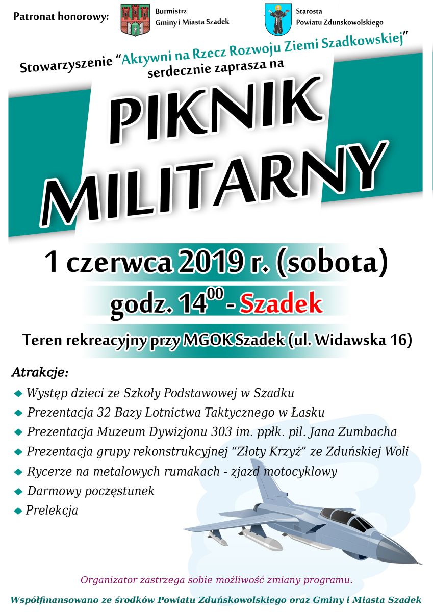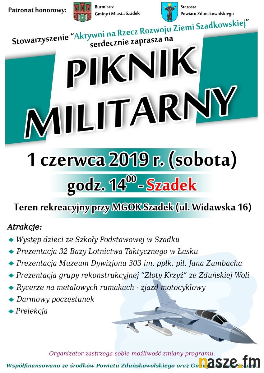 Zabawa zaczyna się od godz. 10:00. W programie m.in.: darmowy paintball laserowy, strażacka piana, pokazy ratownictwa medycznego, Konkurs Talentów "Szadkowskie Odkrycia", Piknik Militarny oraz malowanie twarzy, duże bańki mydlane, konkursy z nagrodami, strefa gastronomiczna.
