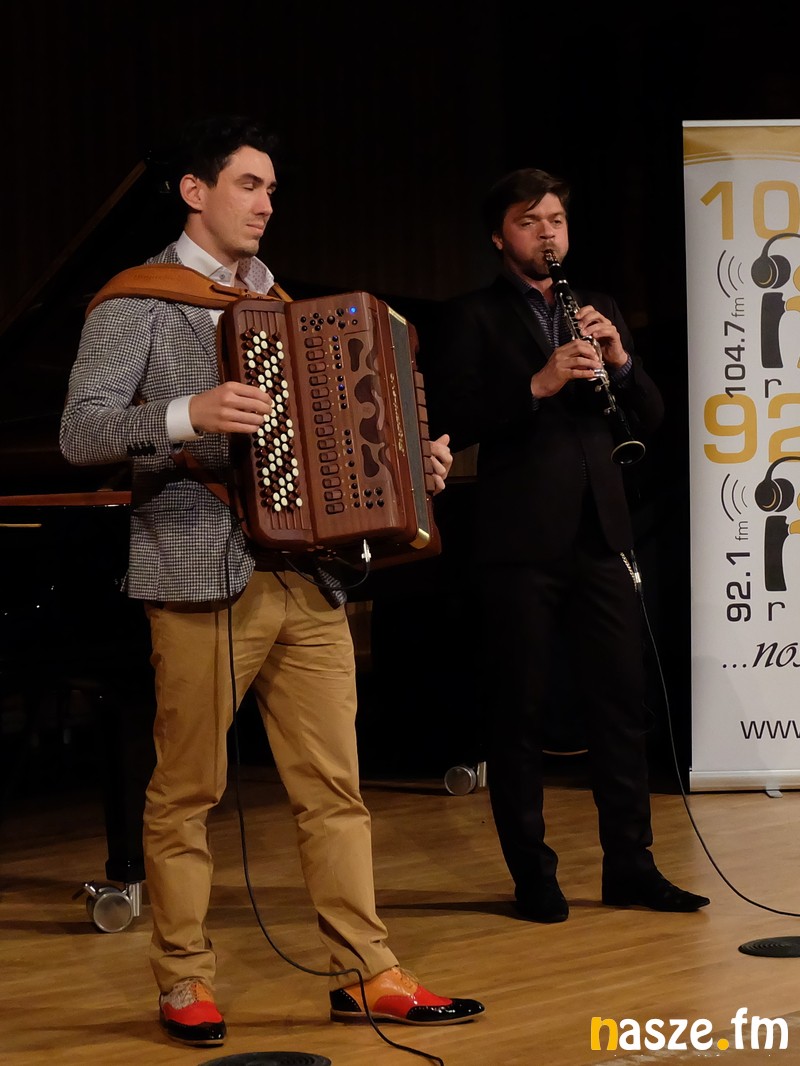 - W pierwszej odsłonie Double Double Duo, bo taką nazwę zespołu przyjęli kanadyjscy muzycy, dało ponad godzinny koncert na scenie sali koncertowej sieradzkiej szkoły muzycznej. Mieliśmy okazję posłuchać utworów Jana Sebastiana Bacha nie tylko w typowo barokowej aranżacji, ale również Bacha na rockowo. Panowie zaskoczyli słuchaczy Chopinem w opracowaniu na klarnet i fortepian. Na fortepianie muzycy również zagrali utwór na cztery ręce. Wśród prezentowanych kompozycji znalazły się również motywy ze ścieżek dźwiękowych różnych filmów, folkowa muzyka kanadyjska, bułgarska, nieśmiertelne Tico Tico oraz Polka Dziadek. Koncert, który zakończył się bisem i owacjami na stojąco w niezwykle ciekawy sposób prowadził pan Kornel Wolak - relacjonuje Sławomir Cieślak, wicedyrektor szkoły muzycznej w Sieradzu.