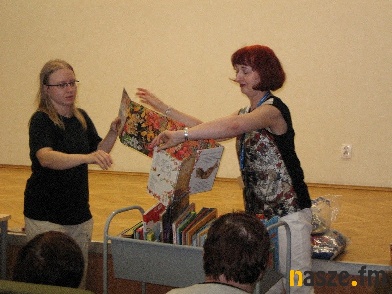 W środę 5 czerwca uczestnicy wycieczki gościli w Wojewódzkiej Bibliotece Publicznej, gdzie wysłuchali dwóch prelekcji - "Dzieje książki" i "Książka dziecięca dawniej i dziś". Bibliotekarki Elżbieta Domagalska i Bogusława Kuć zaprezentowały m. in. zwoje papirusowe, kodeks rękopiśmienny pergaminowy, tabliczki woskowe. Sieradzanie mieli okazję osobiście przekonać się, jak pisze się rylcem na tabliczce woskowej. Zachwyt uczestników wzbudziła bogata i różnorodna oferta książek ze zbirów Muzeum Książki Dziecięcej, które obecnie wchodzą w skład Działu Zbiorów Specjalnych łódzkiej książnicy . Najmłodsi mają do dyspozycji książki dźwiękowe, z ruchomymi obrazkami, z puzzlami, gumowe do kąpieli, książki - poduszki, książki-harmonijki, zapachowe, z pacynkami, trójwymiarowe. Do oglądania tych ostatnich niezbędne są specjalne okulary.