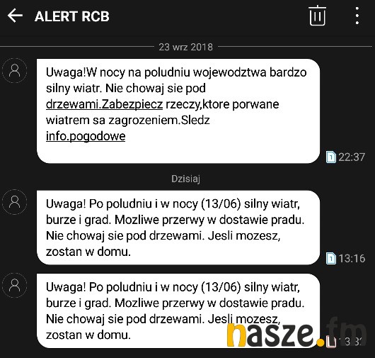 Mieszkańcy otrzymują także drogą sms-ową alerty od Rządowego Centrum Bezpieczeństwa. Ostrzegają przed silnym wiatrem, burzami i gradem, a także przed przerwami w dostawie prądu.