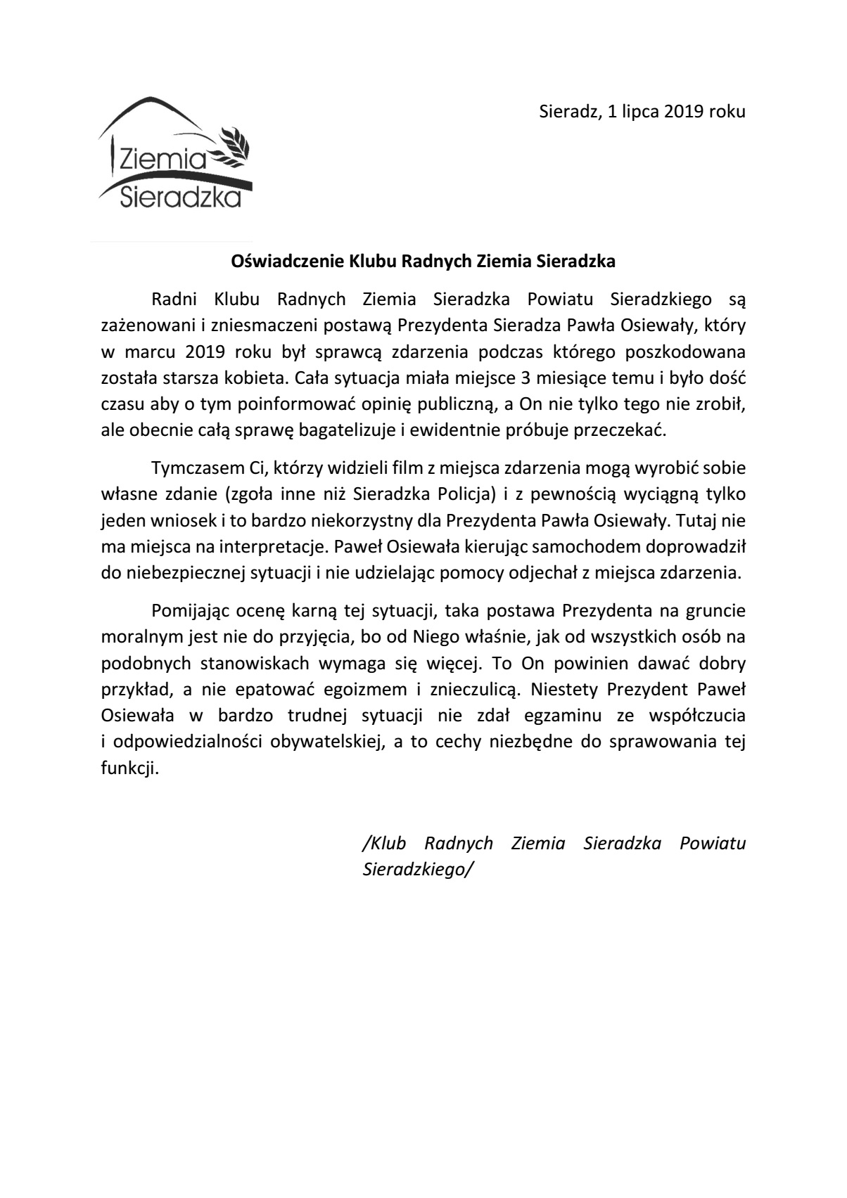 Do redakcji Naszego Radia trafiły dziś (1 lipca) stanowiska: Radnych Klubu Radnych Ziemia Sieradzka Powiatu Sieradzkiego oraz Klubu Radnych Rady Miejskiej w Sieradzu Koalicji Obywatelskiej. Oto ich treść:Odznaczony przez Prezydenta Dudę Prezydent Sieradza potrącił staruszkę i zwiał z miejsca wypadku... https://t.co/pYbj5G8rJc