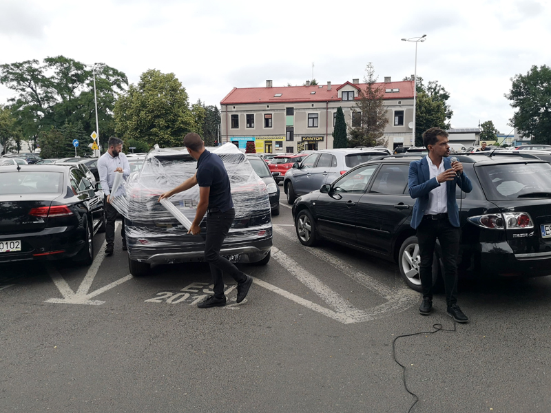 Michał Kołodziejczak podczas happeningu ofoliował prywatny samochód prezydenta.