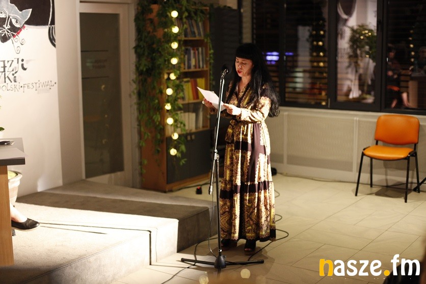 Mimo późnej pory festiwalowa publiczność uważnie słuchała wierszy Barbary Gruszki-Zych, poetki, dziennikarki i reporterki.