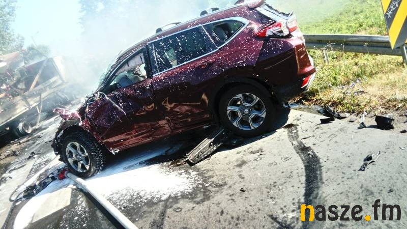 W wypadku poszkodowany został kierowca samochodu osobowego, który został przetransportowany helikopterem Lotniczego Pogotowia Ratunkowego do szpitala w Łodzi. Obrażania odnieśli również kierowca ciężarówki oraz pasażer auta osobowego, którzy także zostali hospitalizowani.
