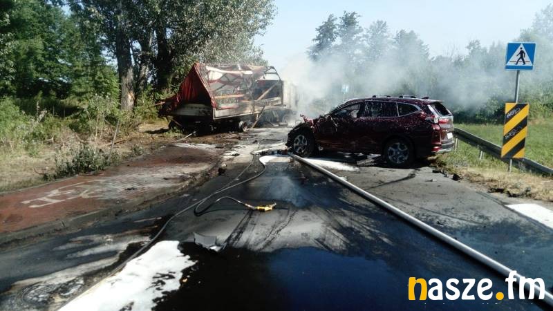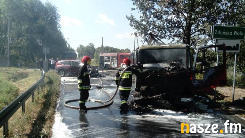 Na skrzyżowaniu ulic Opiesińskiej i Klonowej w Zduńskiej Woli tuż po godz. 9:00 doszło do niebezpiecznego zdarzenia - samochód osobowy zderzył się z cieżarówką, która następnie stanęła w płomieniach. Poszkodowane są trzy osoby.