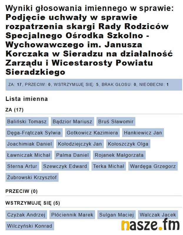 Najwięcej emocji wywołał dziś jeden z ostatnich punktów obrad - Podjęcie uchwały w sprawie rozpatrzenia skargi Rady Rodziców Specjalnego Ośrodka Szkolno - Wychowawczego im. Janusza Korczaka w Sieradzu na działalność Zarządu i Wicestarosty Powiatu Sieradzkiego. O problemach i wątpliwościach Rady Rodziców pisaliśmy TUTAJ. Radni uznali skargę za bezzasadną.