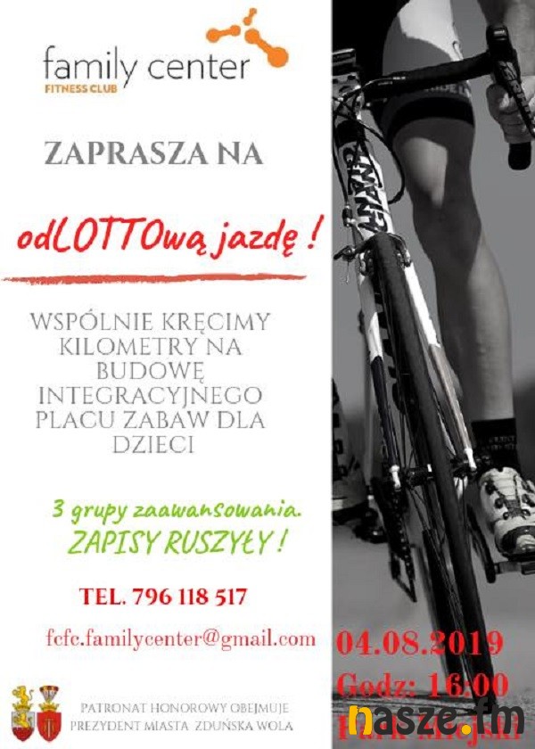 "OdLOTTOwa jazda" to program, w którym Miasto Zduńska Wola bierze czynny udział i wciąż liczy się w walce o zwycięstwo. Szansa na zrobienie dodatkowych kilometrów już w najbliższą niedzielę 4 sierpnia. Fitness Club Family Center zaprasza na 16:00 do Parku Miejskiego w Zduńskiej Woli. Tam rozpocznie się rowerowa wycieczka po okolicy, która potrwa do ok. 19:00.
