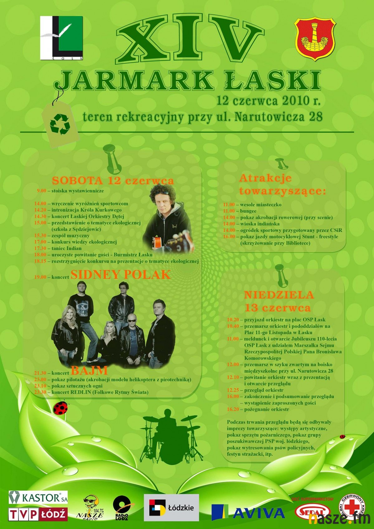Tegorocznymi gwiazdami będą: polski zespół pop-rockowy BAJM oraz SIDNEY POLAK. Program jarmarku przyciąga z roku na rok coraz większe grono zwolenników dobrej zabawy. Poza występami na scenie, odbywać się będzie również prezentacja firm z Łasku i okolic. Miejscem imprezy będzie teren rekreacyjny przy ulicy Narutowicza 28.