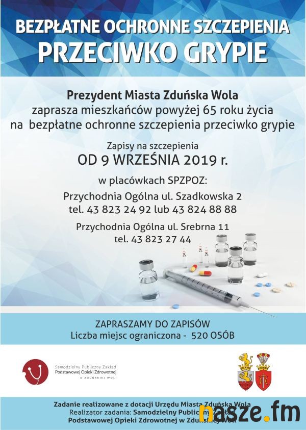 Szczepienia są realizowane z dotacji Urzędu Miasta Zduńska Wola. W akcji może wziąć udział 520 osób.