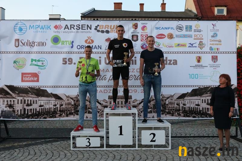 Na 10 km triumfował 20-letni Damian Skupiński z Krzeczowa, reprezentujący Klub Biegacza Warta (35 min 39s.). Drugi na mecie zameldował się doświadczony zduńskowolanin, zawodnik Żegliny Sieradz, Sylwester Rębacz (36:31). Podium uzupełnił biegacz Rajsportu Active, Daniel Kokot z Ozimka (37:21).