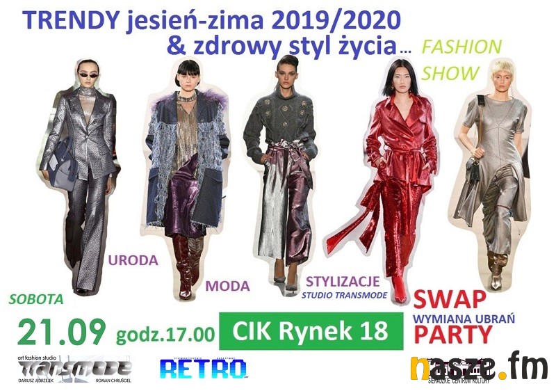 Centrum Informacji Kulturalnej w Sieradzu zaprasza 21 września na kolejną edycję imprezy modowej "Trendy jesień zima 2019/2020 i Zdrowy Styl Życia". Będzie można też bezgotówkowo wymienić się niepotrzebnymi ubraniami