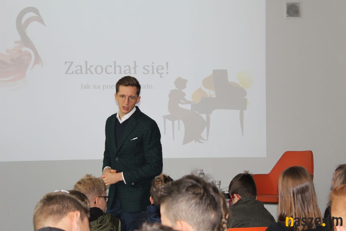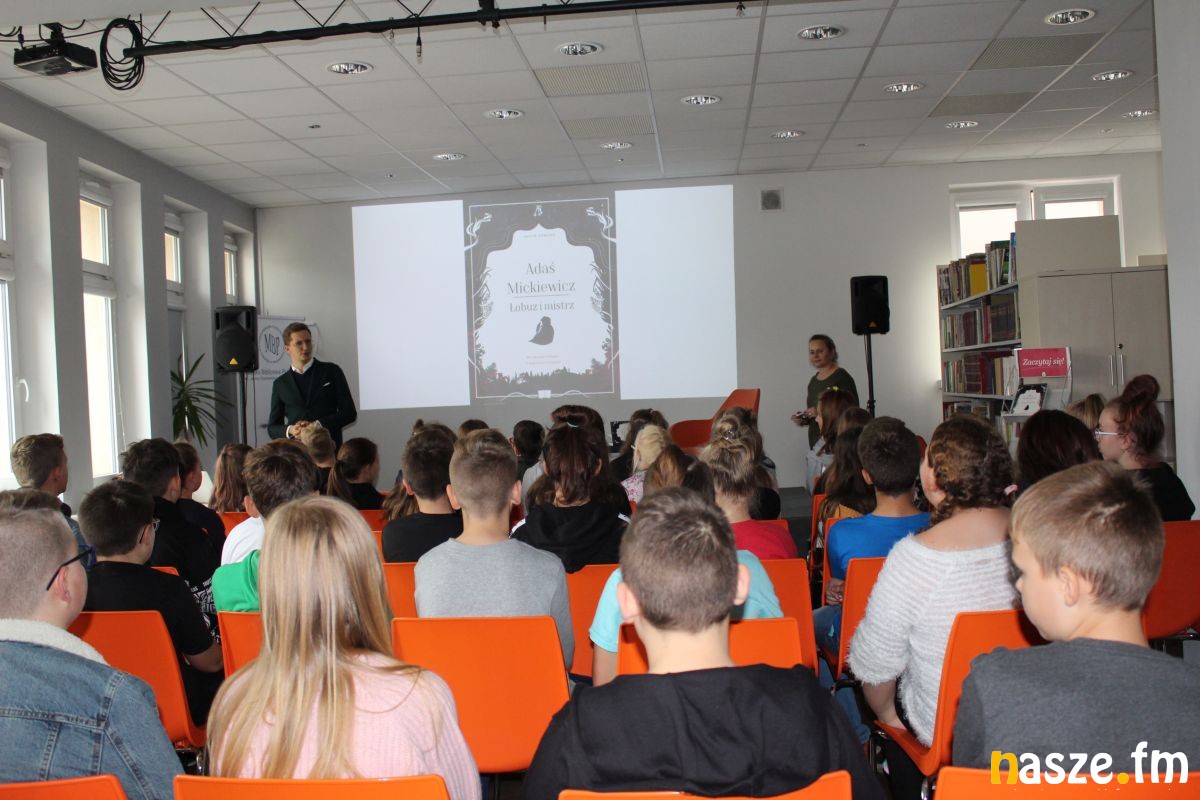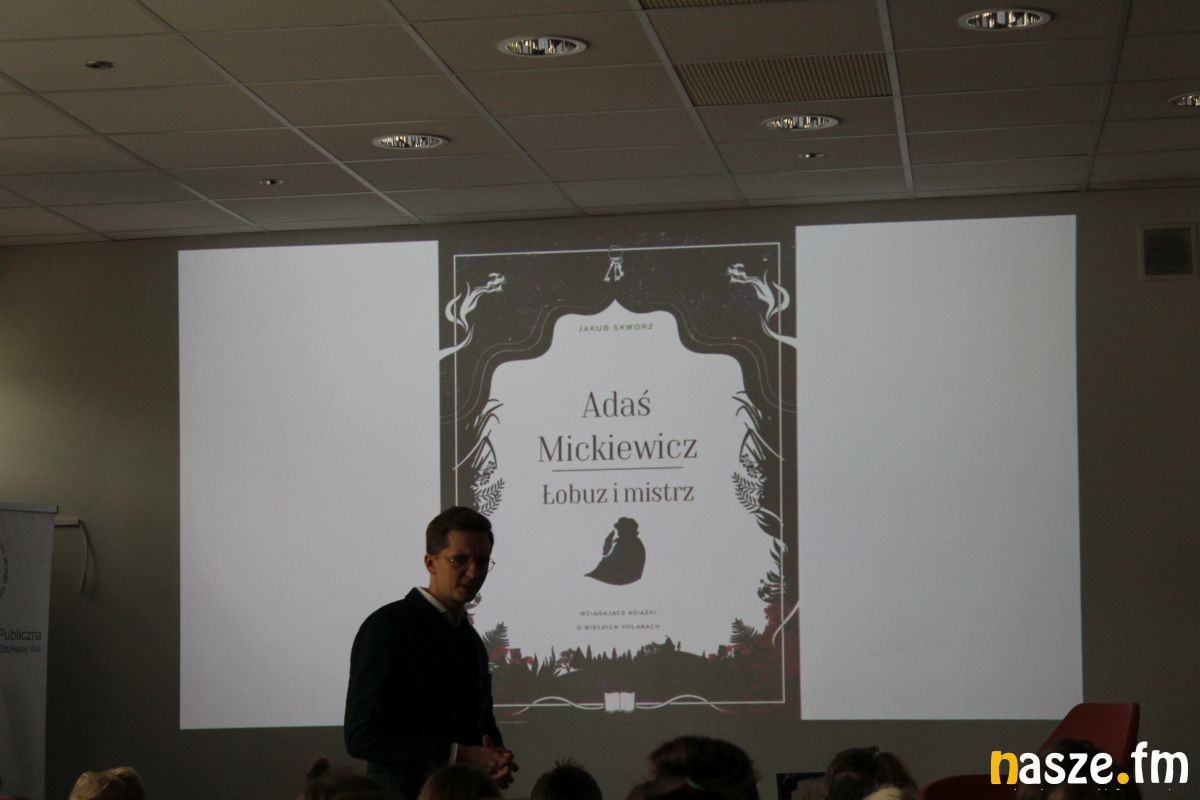 Gość biblioteki m.in opowiedział młodym czytelnikom o swojej powieści zatytułowanej "Adaś Mickiewicz. Łobuz i mistrz". To nietypowa biografia naszego wieszcza będąca swego rodzaju podróżą po innych czasach. Jakub Skworz przedstawił życie Mickiewicza od kulis, jego awanturniczą młodość, świat, w którym dorastał. W spotkaniu uczestniczyli uczniowie Szkoły Podstawowej nr 9 z Oddziałami Integracyjnymi w Zduńskiej Woli.