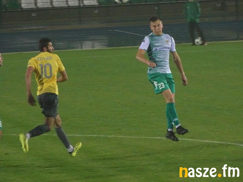 Starcie w Sieradzu zaczęło się na korzyść gospodarzy. Już w pierwszych minutach Damian Pawlak dośrodkował w pole karne, a z główki tuż nad poprzeczką strzelił Grzegorz Brochoki. Chwilę później z dystansu huknął Łukasz Chojecki, ale i tym razem futbolówka minęła bramkę przeciwnika. Później brawurą popisał się Mikołaj Zwoliński, który z połowy boiska próbował przelobować bramkarza Kutna. Michał Sokołowicz poradził sobie jednak w tej sytuacji i wybił piłkę na rzut rożny. W następnych minutach goście lepiej zaczęli organizować się w grze defensywnej i Warcie trudniej było stworzyć dogodną sytuację. Przed przerwą szansę na gola miał jeszcze Wiktor Płaneta. Zawodnik sieradzkiej drużyny jednak przestrzelił i pierwsza połowa zakończyła się bez bramek.
