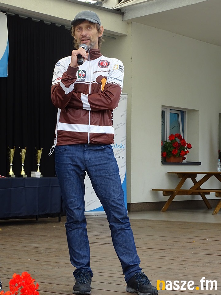 Uczestnicy pikniku spotkali się także z podróżnikiem Dominikiem Szmajdą, który opowiadał o swoich rowerowych podróżach po świecie.