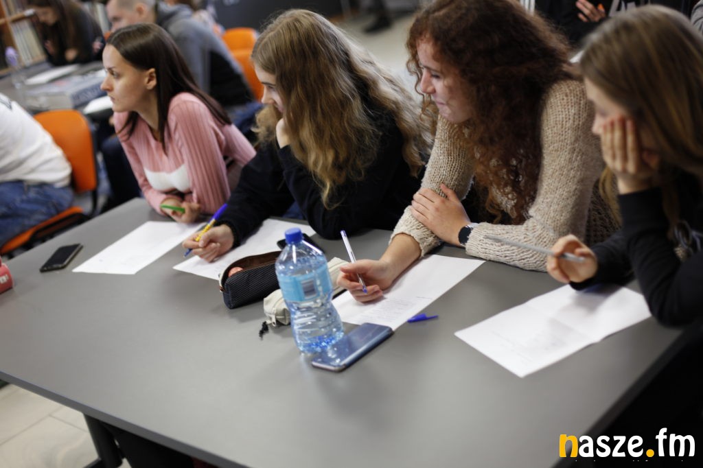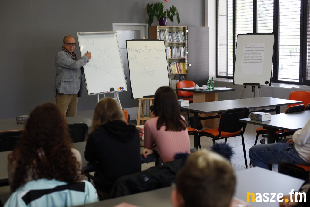 Profesor opowiedział młodzieży o zasadach i trudnościach podczas pracy nad przekładem tekstu. Uczestnicy zajęć mieli też okazję spróbować swoich sił w tłumaczeniu jednego wiersza. Z Jerzym Jarniewiczem udało się też porozmawiać reporterce Naszego Radia: