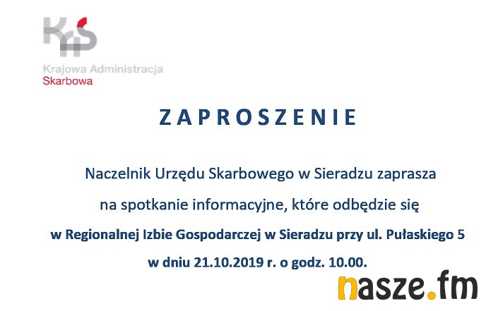 Regionalna Izba Gospodarcza i Naczelnik Urzędu Skarbowego w Sieradzu zapraszają 21 października na spotkanie informacyjne. Udział jest bezpłatny, początek o 10.