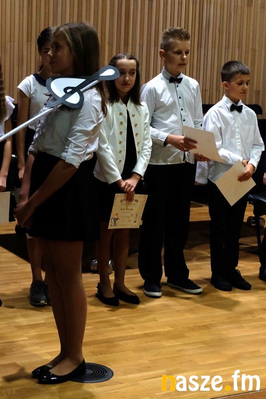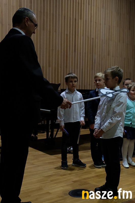 Zanim jednak na ramieniu każdego ucznia klasy pierwszej spoczął wielki klucz wiolinowy, uczniowie ci wystąpili po raz pierwszy na scenie sali koncertowej wykonując wspólnie piosenkę.