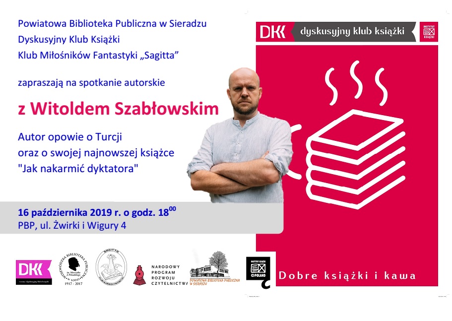 Do udziału w spotkaniu zapraszają Powiatowa Biblioteka Publiczna w Sieradzu, Dyskusyjny Klub Książki i Klub Miłośników Fantastyki "Sagitta". Jest realizowane we współpracy z Instytutem Książki.